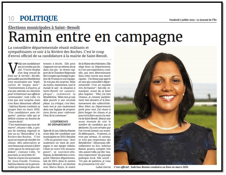 À l’approche des élections municipales de 2026, la campagne s’intensifie à Saint-Benoît. Dans une vidéo diffusée cette semaine, Sabrina Ramin,…